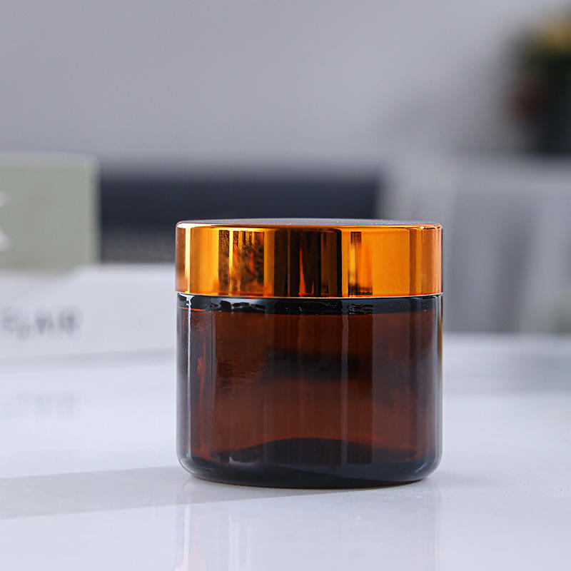 ขวดโหลใส่ครีมบำรุงผิวแก้วสีเหลืองอำพันขนาด50กรัม100กรัม