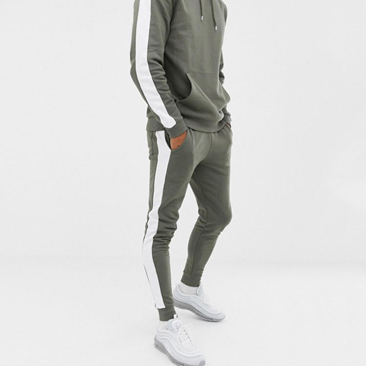 ชุดวอร์มชุดกีฬาสำหรับผู้ชาย,ชุดวอร์มผ้าฝ้ายแบบสั่งตัด2ชิ้นลายทางด้านข้าง
