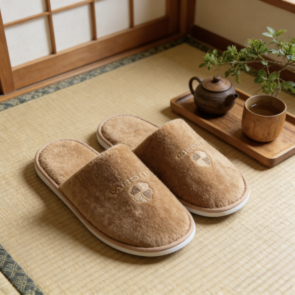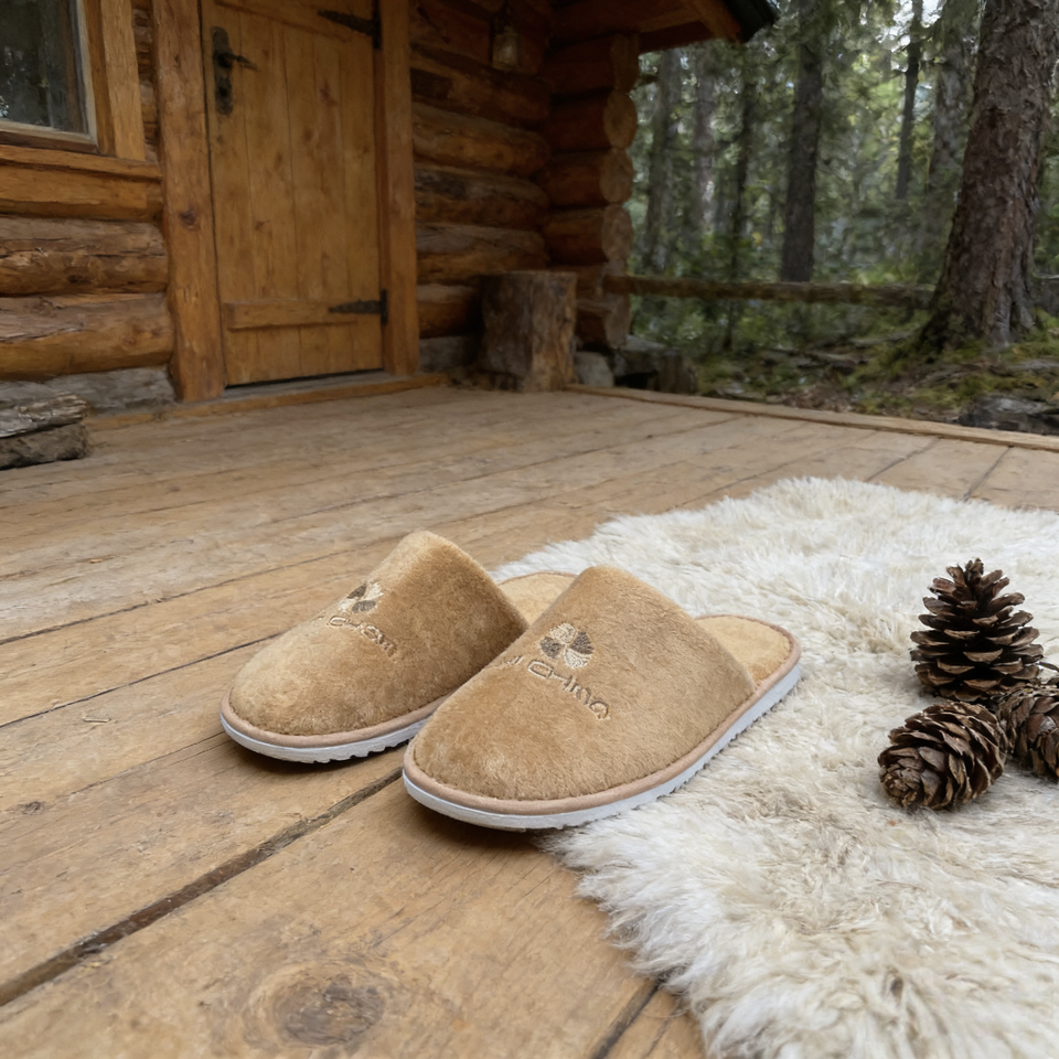 รองเท้าสลิปเปอร์ผ้ากำมะหยี่คอตตอนสำหรับโรงแรมแบบขายส่ง พร้อมโลโก้โรงแรม