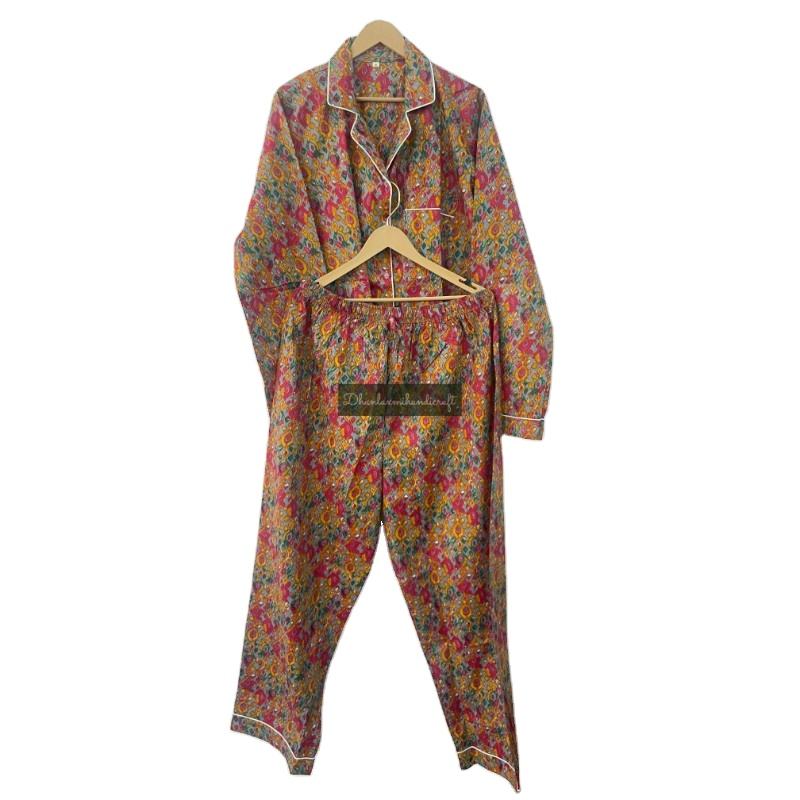 ชุดนอนผ้าฝ้าย100% ทรงเรขาคณิตขนาดใหญ่พิเศษสำหรับฤดูร้อน