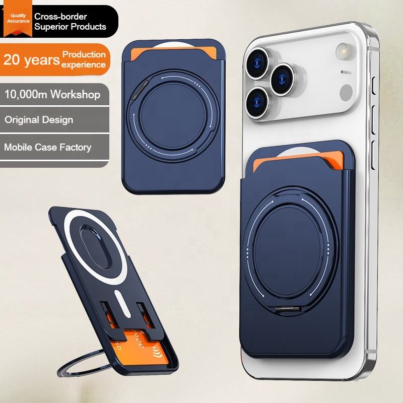 ที่ใส่บัตรแบบแม่เหล็กบางเฉียบพร้อมขาตั้งหมุนได้ 360 องศา ขายส่ง ° ขาตั้งโทรศัพท์มือถือแบบหมุนได้ สำหรับ iPhone 16 Pro และ Samsung Grip