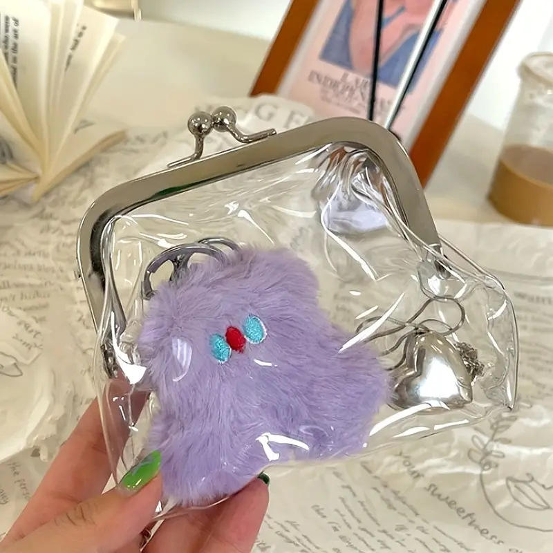 กระเป๋าเงินใส่เหรียญไวนิลใสขนาดเล็กกระเป๋าใส่เงินสด PVC ใสมีช่องล็อคแบบเปิด