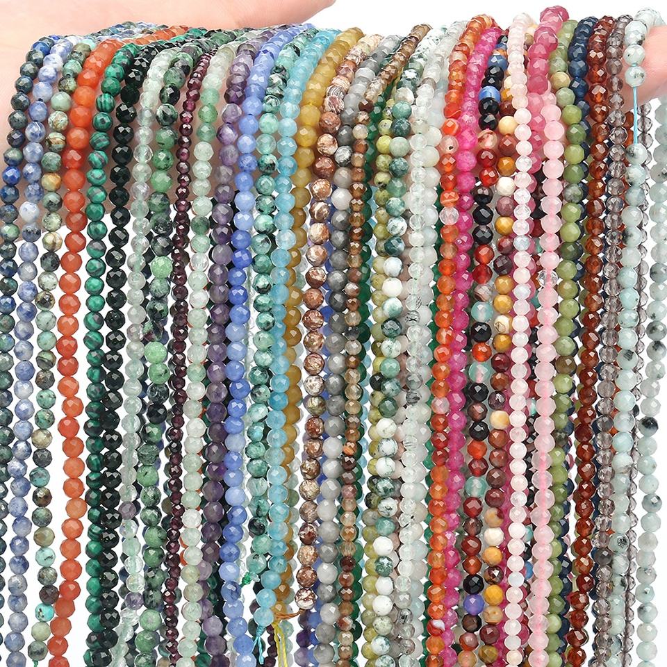 ขายส่งขนาดเล็กขนาด2/3/4Mm Faceted Unakite/Tiger Eye/Sunstone/Amazonite หินหลวมลูกปัดสำหรับเครื่องประดับทำ