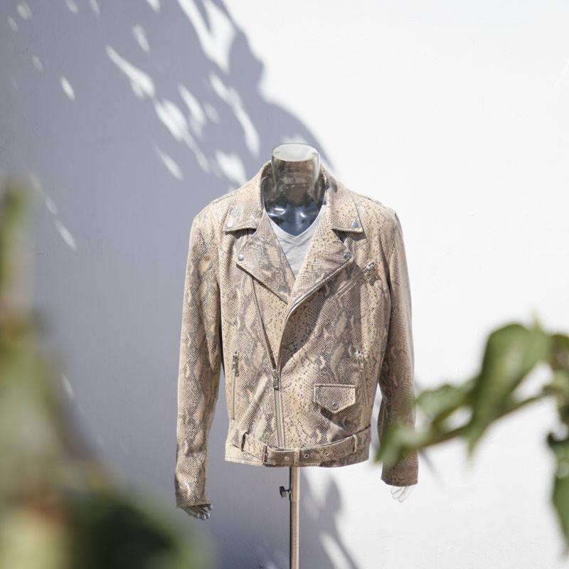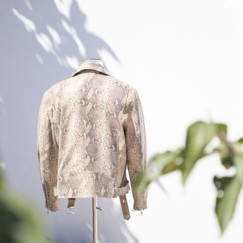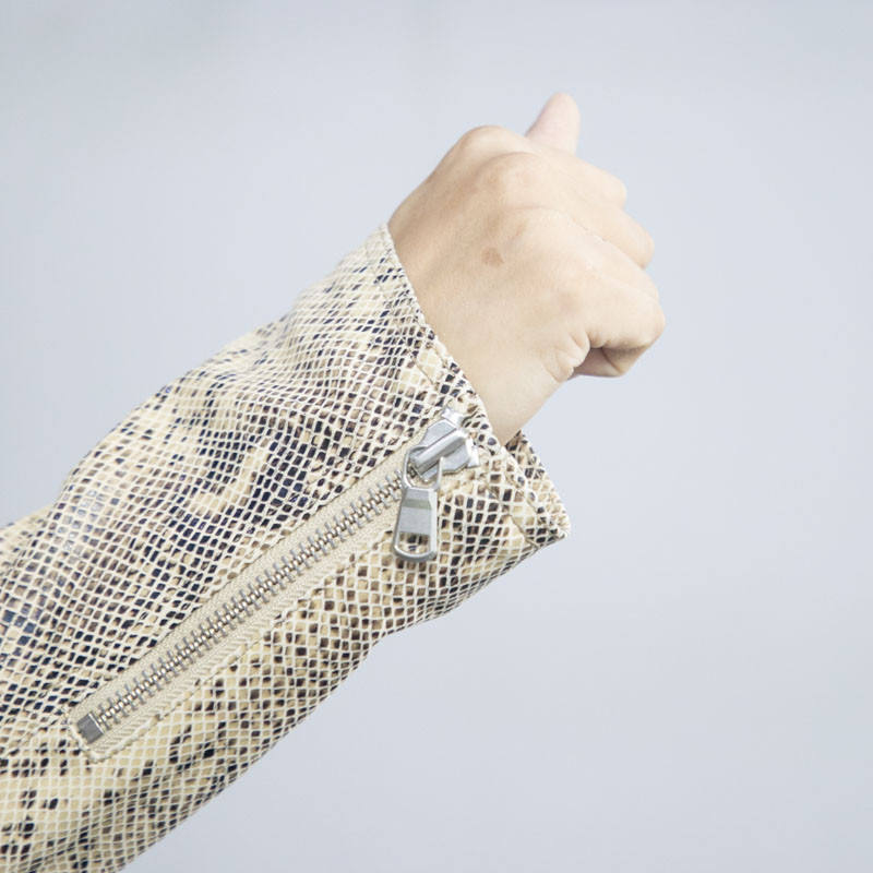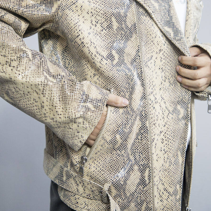 แจ็กเก็ตหนังพิมพ์ลายงูสำหรับฤดูหนาวคอเสื้อยาวแจ็กเก็ตปรับแต่งได้คุณภาพสูงผลิตแบบมืออาชีพ