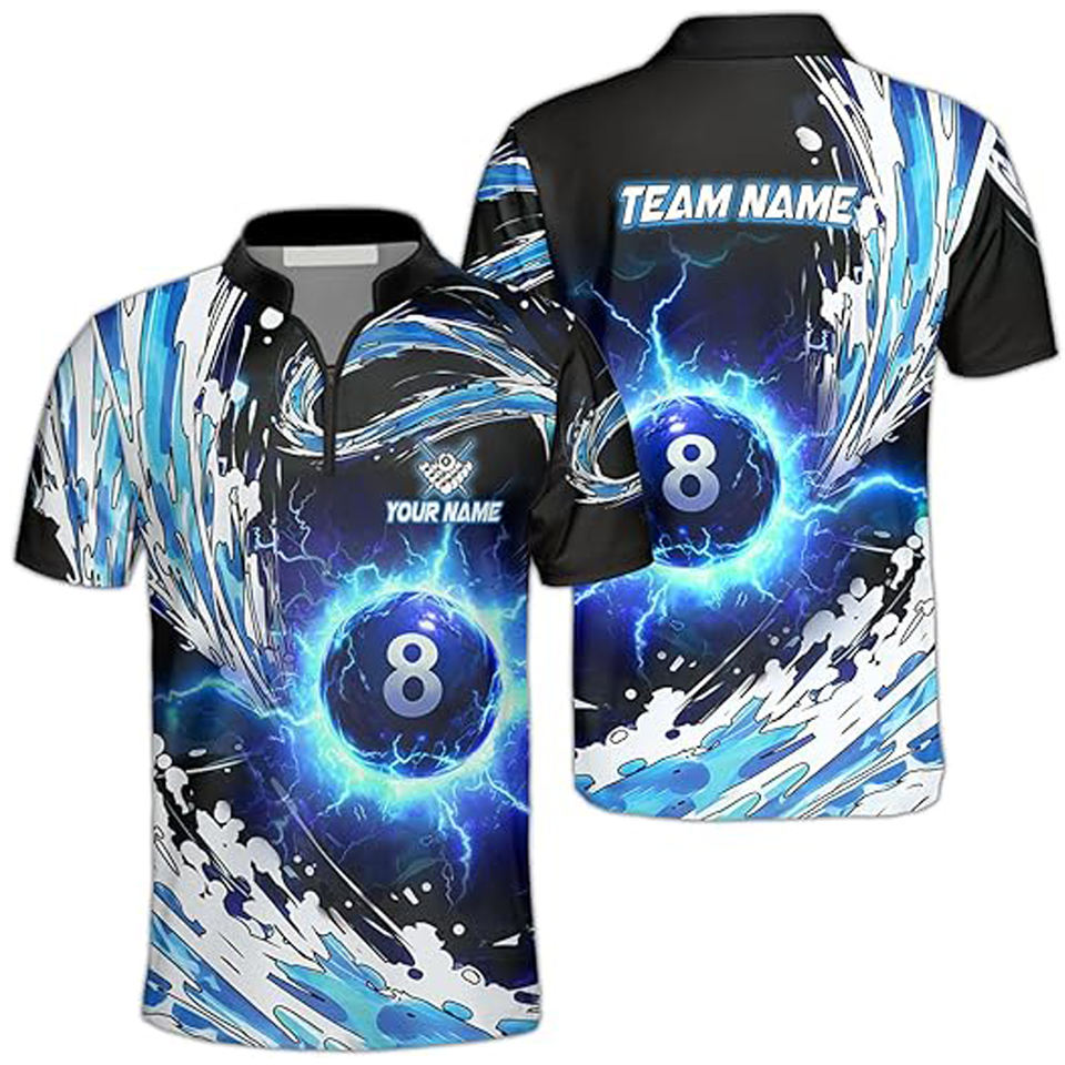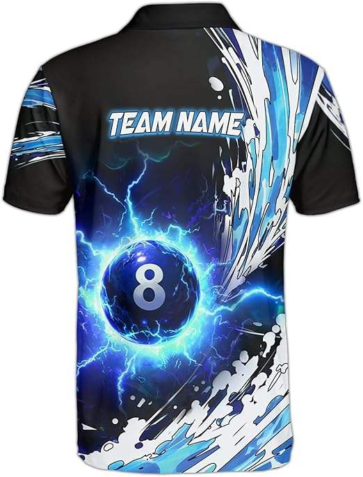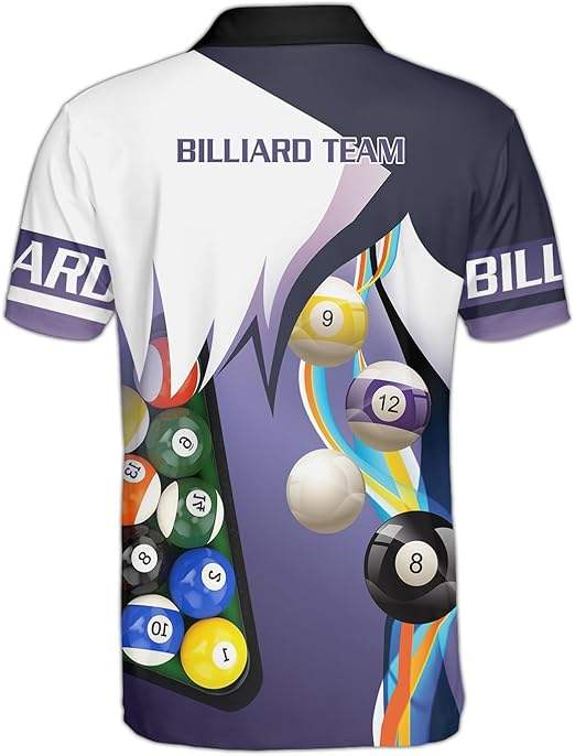 เสื้อโปโลสนุกเกอร์ขายส่ง เสื้อทีมบิลเลียดสั่งทำพิเศษ พิมพ์ลายแบบซับลิเมชั่น ชุดกีฬาแห้งเร็ว
