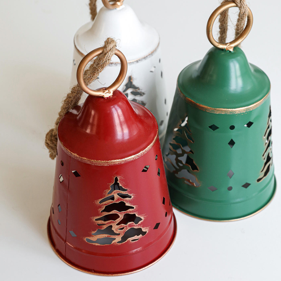เครื่องประดับระฆังโลหะรูปเกล็ดหิมะขายส่ง ของตกแต่งต้นคริสต์มาส ระฆังคริสต์มาสทำมือ ระฆังคริสต์มาสแบบแขวน