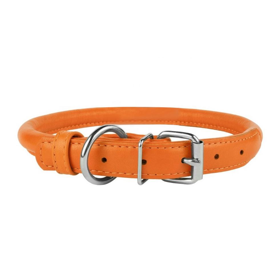 ขายส่งปลอกคอสุนัขหนังกลมเบาะนุ่มปลอกคอสุนัขหนังขนาดใหญ่สีส้ม