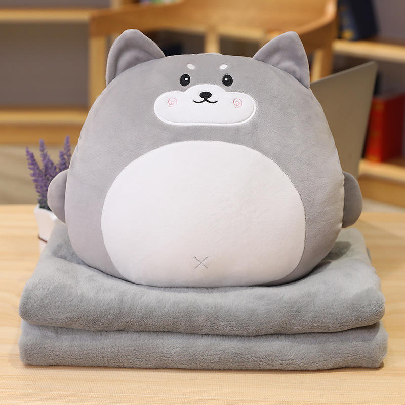 ขายส่งขนแกะนุ่มตุ๊กตา 2 ใน 1 หมอนเครื่องบินผ้าห่มสบายซิปกระเป๋าผ้าห่มท่องเที่ยวที่มีโลโก้สําหรับเด็กชายและเด็กหญิงนุ่ม