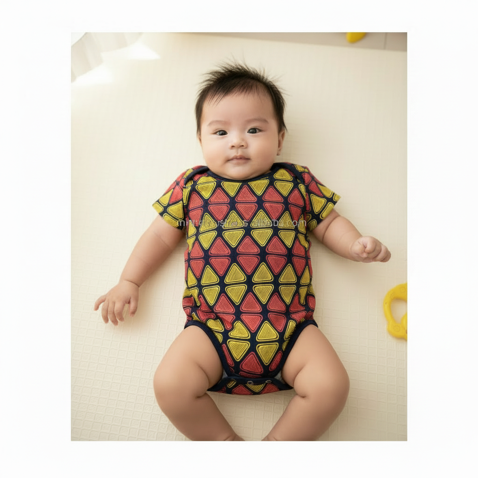 ถุงเท้าเด็กอ่อนเนื้อผ้านุ่มผสมสแปนเด็กซ์/ใยไผ่ ขายส่ง | ชุดรอมเปอร์เด็กทารกพิมพ์ลายสามเหลี่ยมทรงเรขาคณิตน่ารักแขนสั้นมีซิปปิด