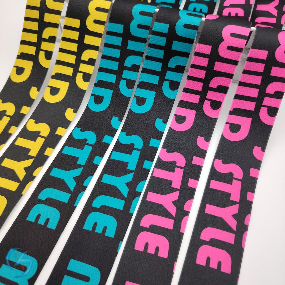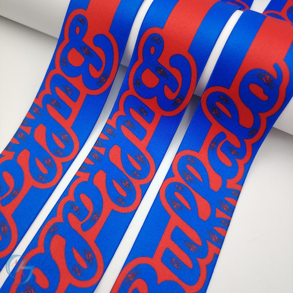 ยางยืดแบบกว้างเนื้อนุ่มสำหรับงานขายส่ง พิมพ์โลโก้ตามสั่ง ผลิตจากโพลีเอสเตอร์/ไนลอน ปลอดภัยต่อสิ่งแวดล้อม สำหรับงานตัดเย็บเสื้อผ้า