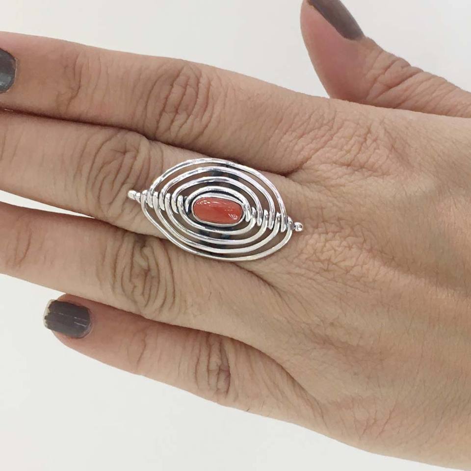 ขายส่ง925แข็งสีเงินสเตอร์ลิงแหวนปะการังสีแดงรูปไข่เรียบเครื่องประดับปะการังสีแดงปะการังธรรมชาติแหวนดีไซน์ไม่ซ้ำใคร