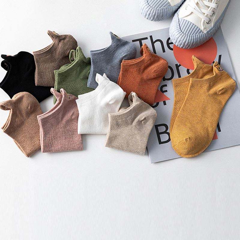 ถุงเท้าข้อสั้นผู้หญิงลายการ์ตูนสัตว์น่ารักสีพื้นปักลายสำหรับฤดูร้อนขายส่ง