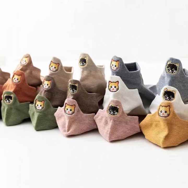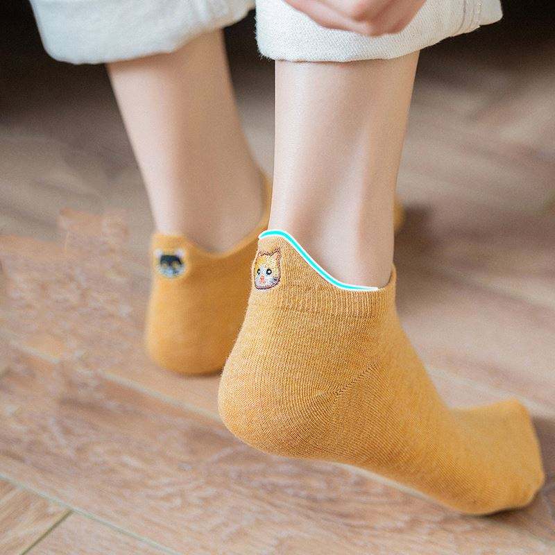 ถุงเท้าผู้หญิงลายการ์ตูนสัตว์สีสันสดใส น่ารัก สำหรับฤดูร้อน ปักลายบริเวณข้อเท้า แบบไม่โชว์