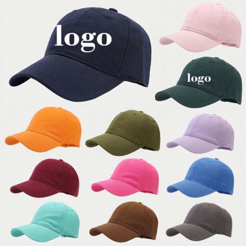 หมวกแก๊ปผ้าฝ้ายสีพื้นแบบขายส่ง หมวกทรงโค้งสำหรับเล่นกีฬา ปักโลโก้ตามสั่ง หมวกเบสบอล
