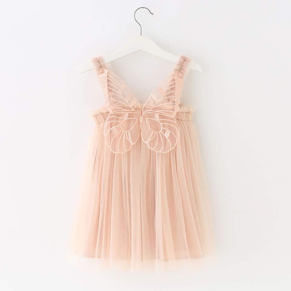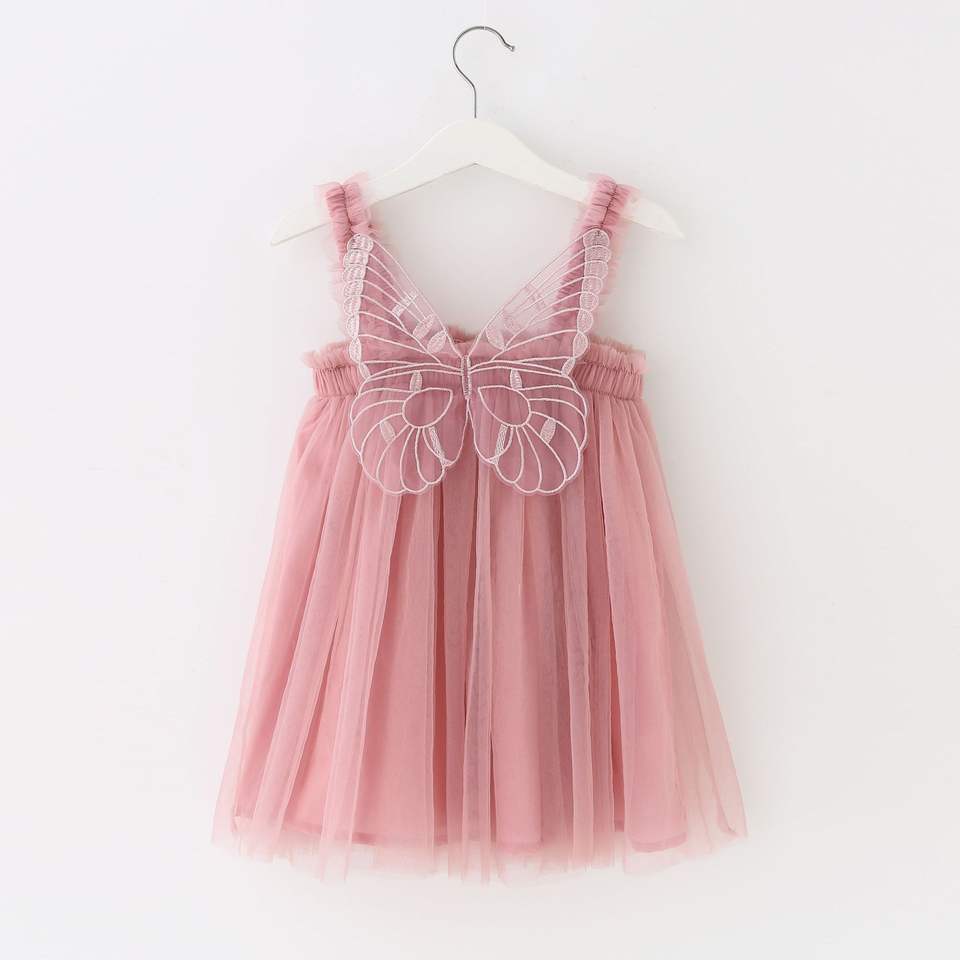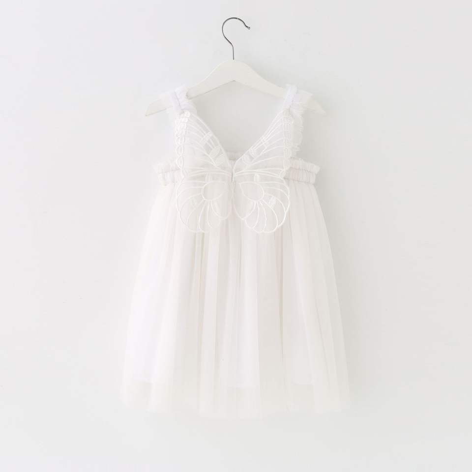 ชุดเดรสเด็กผู้หญิงสีพื้นแบบขายส่ง แขนกุด ผ้าทูลล์ แต่งปีกผีเสื้อ ชุดกระโปรงบัลเลต์สำหรับเด็กเล็กช่วงฤดูร้อน