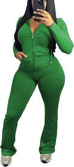 ชุดเซ็ตสองชิ้น เสื้อแจ็คเก็ตแขนยาวสีพื้นแบบขายส่ง พร้อมกางเกงขายาวผ้าสเวตเชิ้ตแบบมีซิป ยืดได้ สไตล์ลำลอง มีฮู้ด สำหรับผู้หญิง