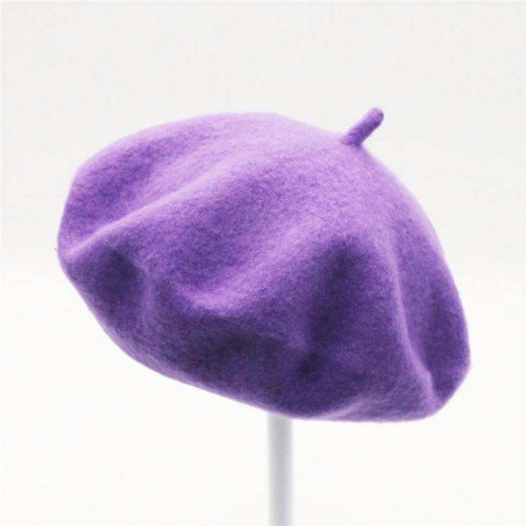 หมวกเบเร่ต์ผ้าขนสัตว์สีพื้นสำหรับผู้หญิงขายส่ง