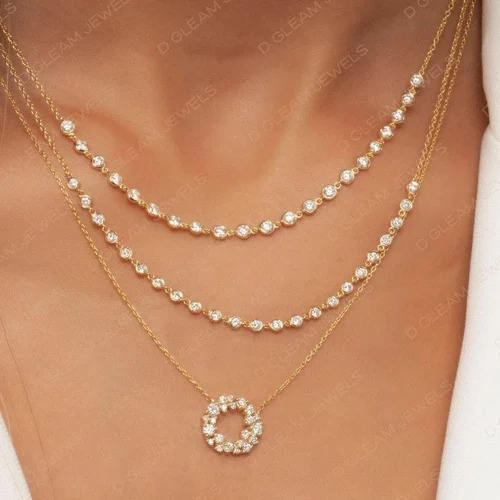 สร้อยคอเพชรสีทองขนาด16นิ้วสำหรับผู้หญิงเครื่องประดับทองคำสีเหลืองทองที่ทันสมัยและมีทองคำขาว