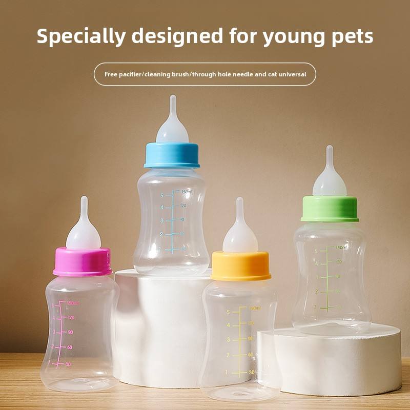 Wholesale Solid Pattern Silicone Nipple Kitten Feeder Eco-Friendly Cat Milk Bottle for Pet Newborn Puppies