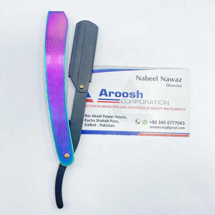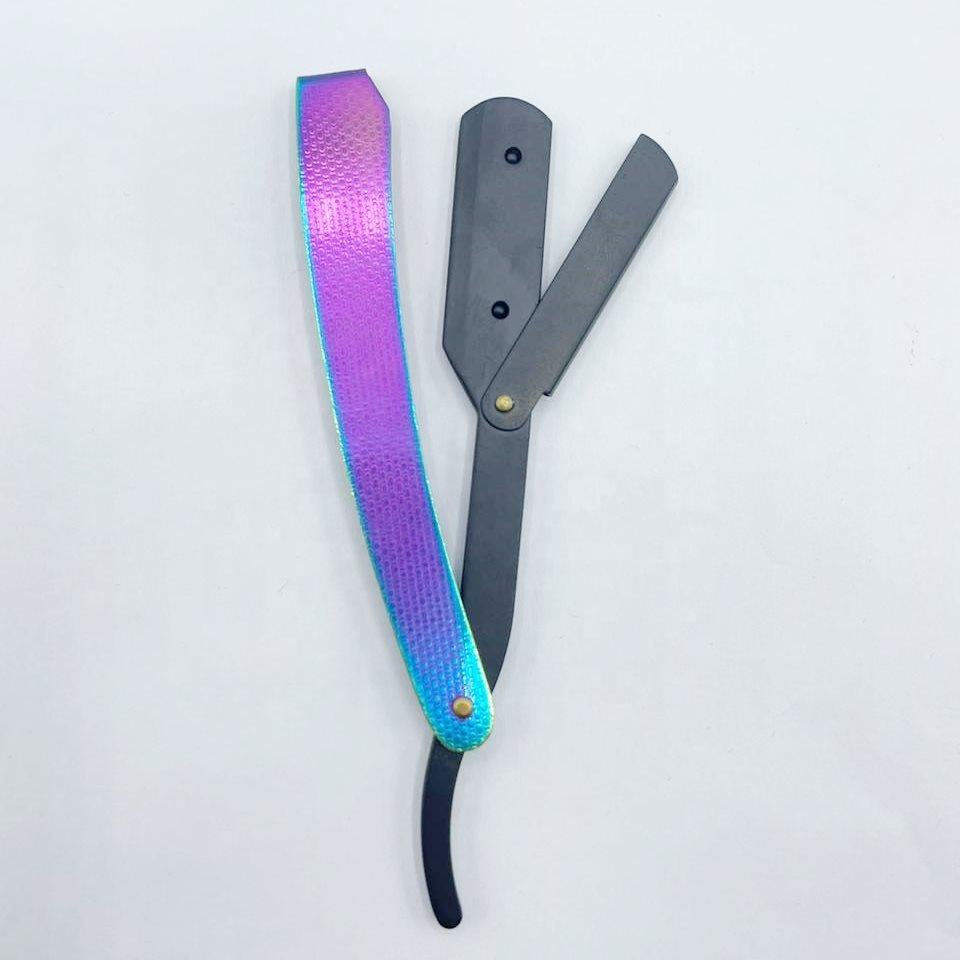 มีดโกนหนวดช่างตัดผมสแตนเลสสีรุ้งสีดำ