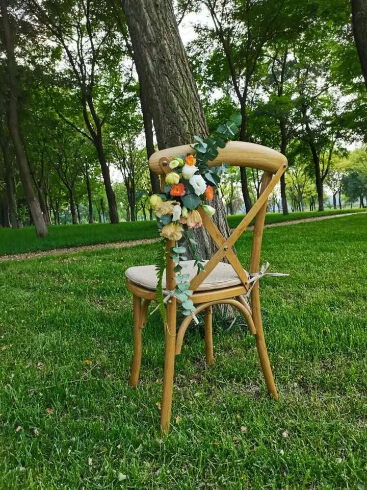 เก้าอี้รับประทานอาหารทำจากไม้เนื้อแข็งแบบไขว้ x หลังสำหรับโรงแรมและงานแต่งงานเบาะฟองน้ำผ้าลินินนุ่มเฟอร์นิเจอร์เชิงพาณิชย์