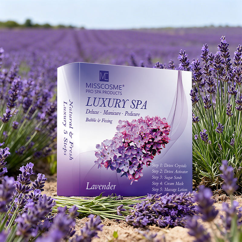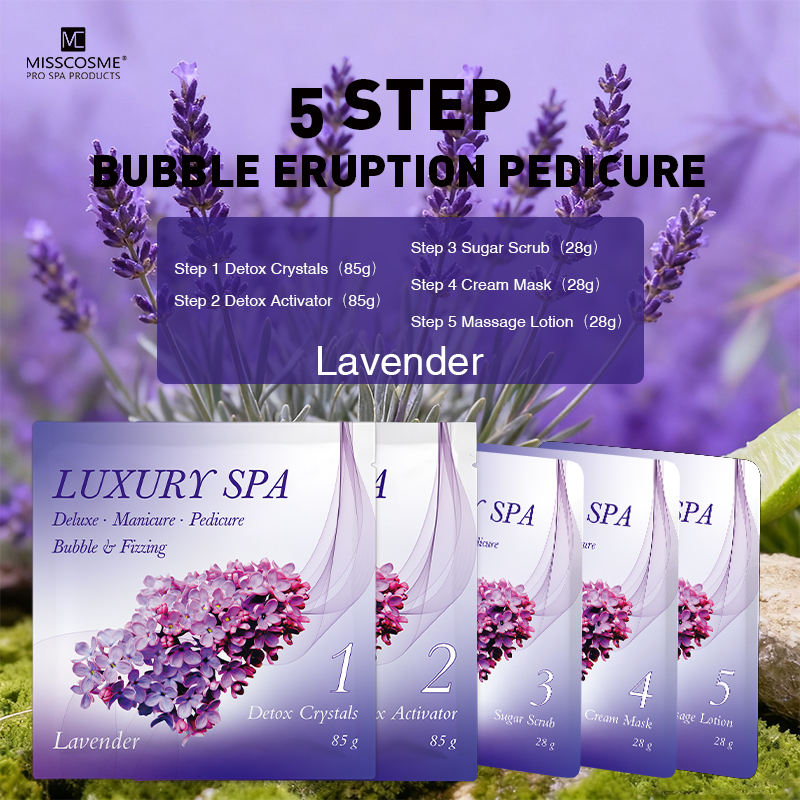 ชุดทำเล็บเท้าในกล่อง5 in 1ชุดทำเล็บเท้าหรูหรา5ขั้นตอนน้ำหอมลาเวนเดอร์เข้มข้นผลิตภัณฑ์ดูแลผิว
