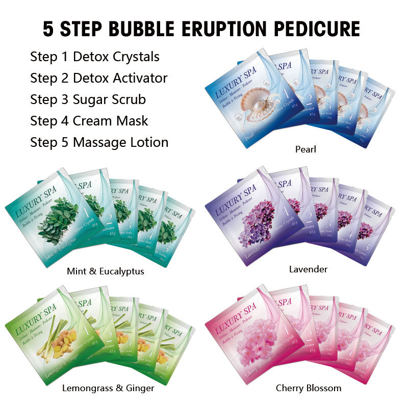 Product name:5 Steps Pedicure Kit (Crystals, Activator, Sugar Scrub, Cream, Lotion)