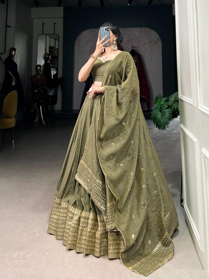 Chanderi lehenga choli บริสุทธิ์ออกแบบลายดอกไม้พิเศษสำหรับงานเลี้ยงและงานแต่งงาน