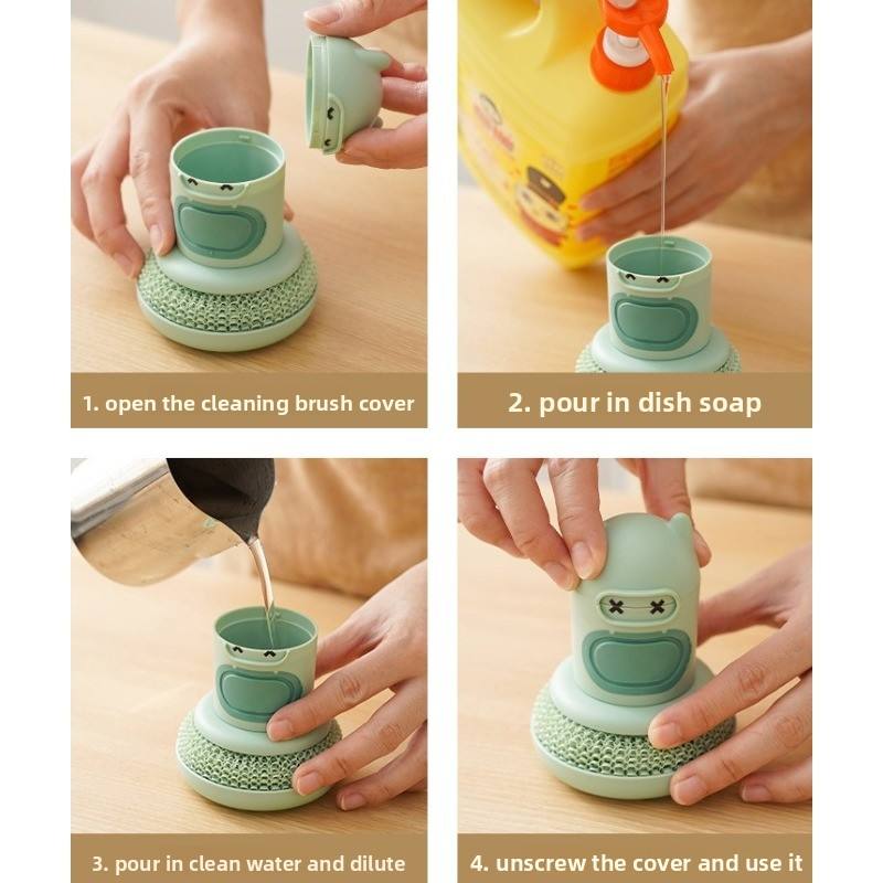 แปรงฟองน้ำพร้อมที่จ่ายสบู่แบบเติมได้ สำหรับทำความสะอาดอย่างมีประสิทธิภาพในครัวเรือน