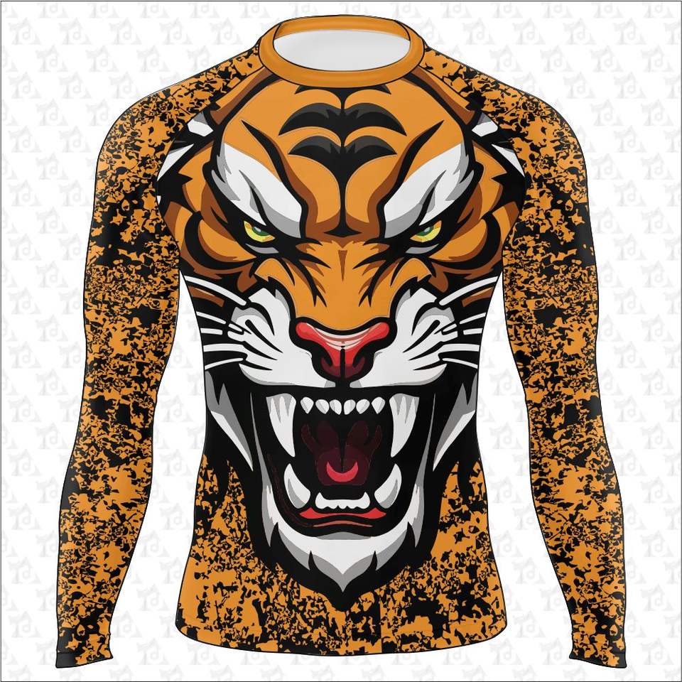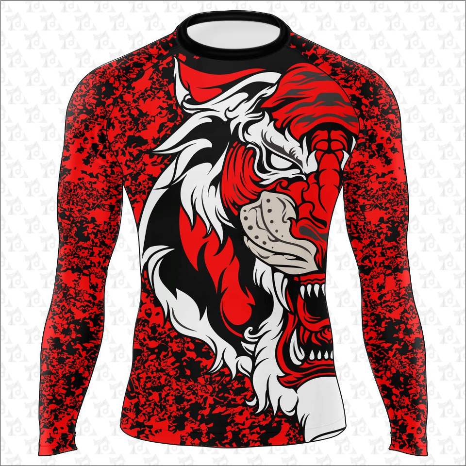 ขายส่งกีฬาผู้ชายฟิตเนสยิมการฝึกอบรมผื่นยามแขนยาวบีบอัดระเหิดพิมพ์เสื้อ Rash Guard OEM