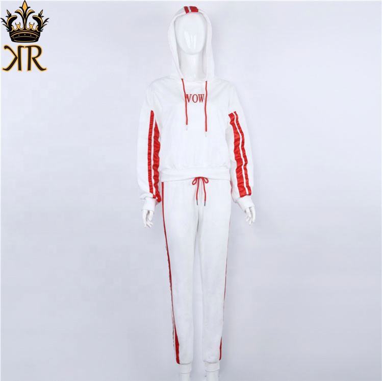 ขายส่งชุดกีฬาผู้หญิงชุดสองชิ้นด้านบนและกางเกงวอร์มผู้หญิงเสื้อสวมหัวมีฮู้ดเหงื่อชุดผู้หญิงชุด