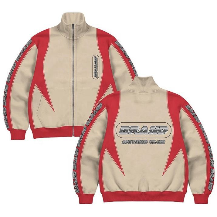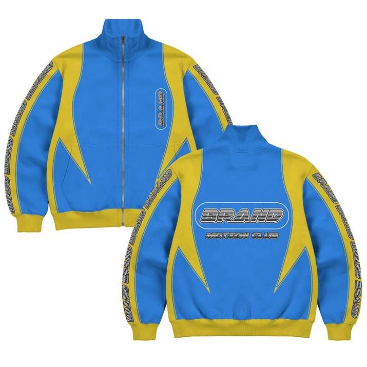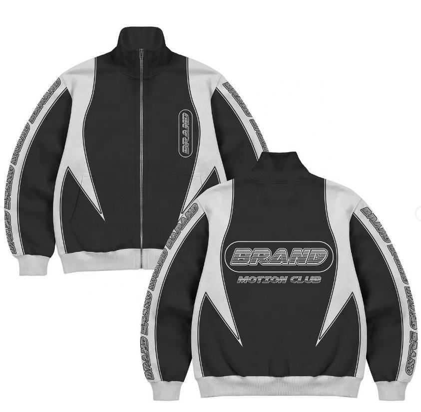 แจ็คเก็ตสปอร์ตขายส่ง แบรนด์โลโก้สั่งทำ แจ็คเก็ตนักแข่งสำหรับผู้ชาย สตรีทแวร์แฟชั่นฤดูหนาว Y2K แจ็คเก็ตบอมเบอร์ลำลองแบบมีซิปสำหรับผู้ชาย