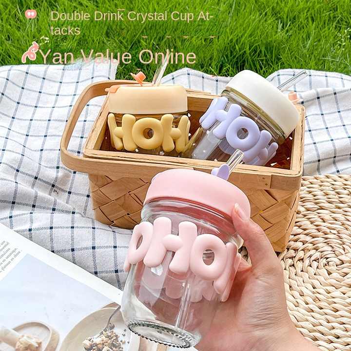 แก้วน้ำดื่มคู่แบบพกพาแก้วโซ่ไข่มุกสวยงามสูงถ้วยใส่นมสำหรับใช้ในบ้าน