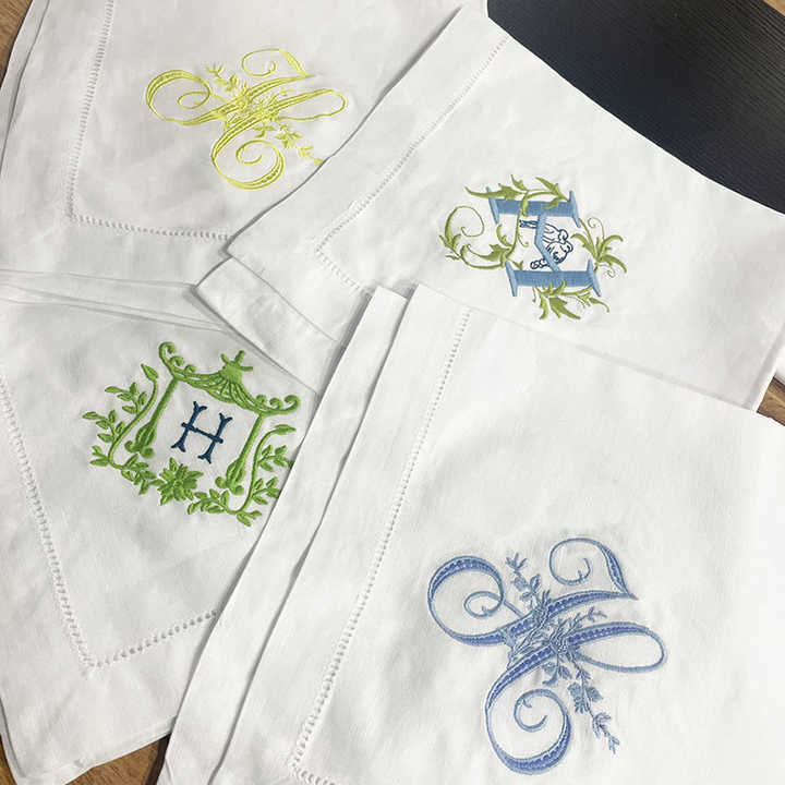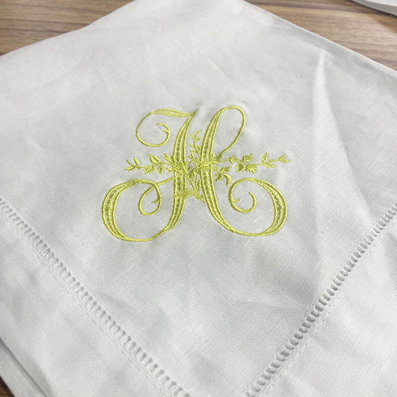 ผ้าเช็ดปากผ้าลินินสีขาวสไตล์โมเดิร์นสำหรับงานเลี้ยงอาหารค่ำ ทำด้วยมือจากผ้าฝ้ายสปริง ปักลายมอนอกราฟิกแบบเย็บริม สำหรับงานแต่งงาน โต๊ะอาหาร สีตามสั่ง