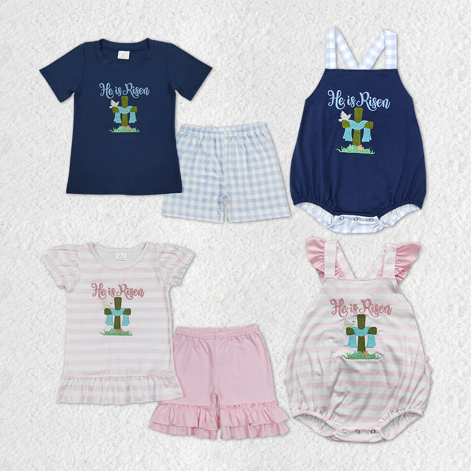 ชุดเสื้อผ้าเด็กผู้หญิงขายส่งสำหรับฤดูใบไม้ผลิ ชุดกางเกงขาสั้นสีชมพูลายดอกไม้ประดับกากเพชร ชุดเสื้อผ้าเด็กสำหรับเทศกาลอีสเตอร์