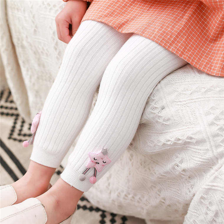 กางเกงเลกกิ้งเด็กผู้หญิงลายการ์ตูนเกาหลีน่ารักสำหรับฤดูใบไม้ผลิ ขายส่ง ผ้าฝ้ายนุ่ม สีพื้น แฟชั่น