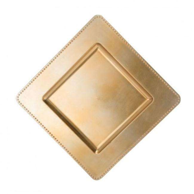 เพลตสีทองขนาดใหญ่ที่ชาร์จไฟใต้จานโลหะทรงสี่เหลี่ยมเหมาะสำหรับติดตั้งบนโต๊ะในงานแต่งงาน