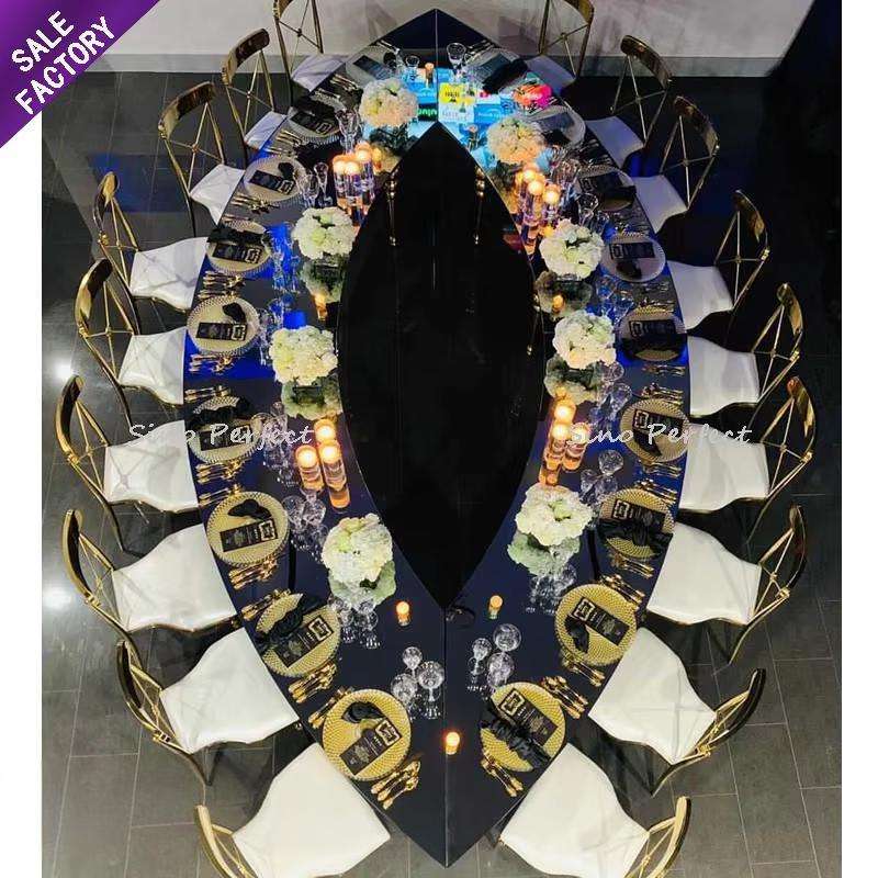 โต๊ะอาหารสี่เหลี่ยมทรงยุโรปหรูหราสไตล์โมเดิร์น ท็อป MDF สำหรับงานแต่งงาน ขายส่ง