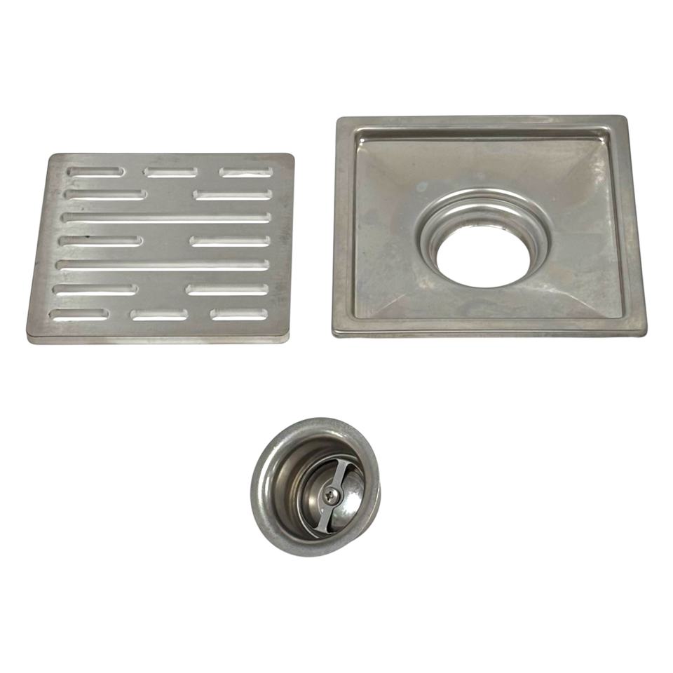 ท่อระบายน้ำสแตนเลส14*14ซม. พร้อมเส้นตรงหนา6มม. สำหรับฝักบัวและระเบียง
