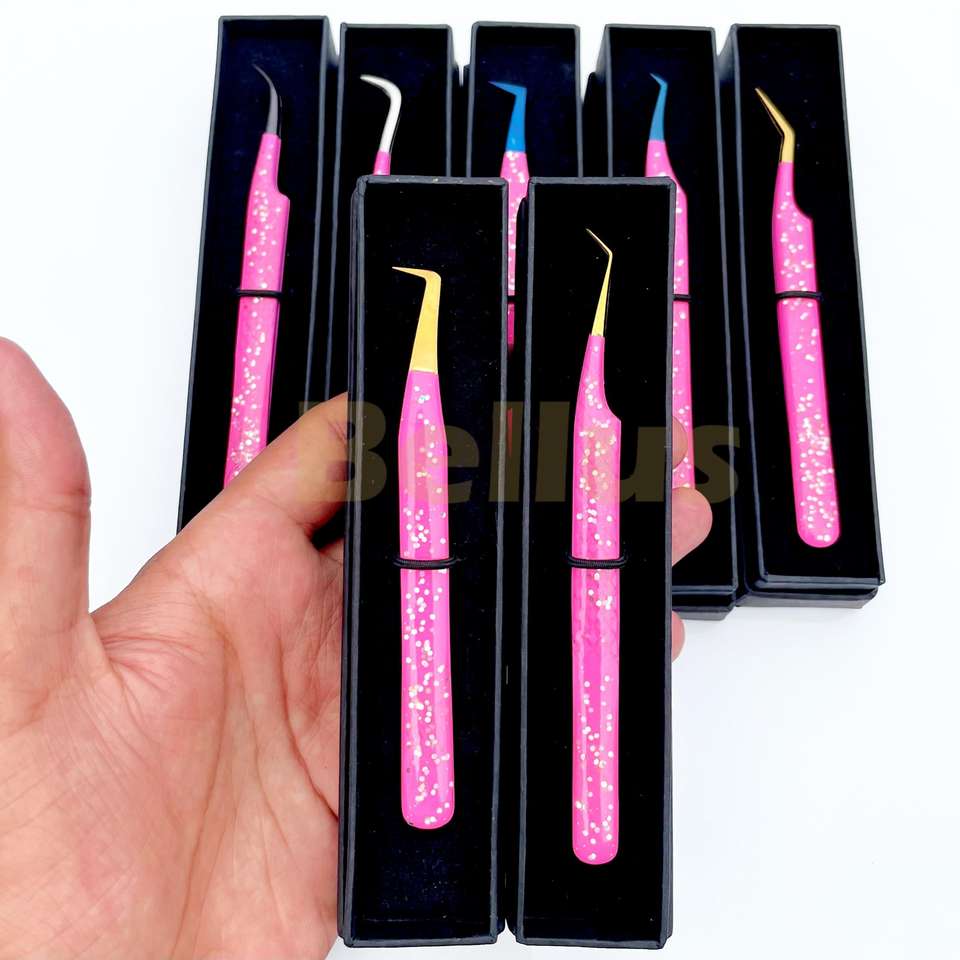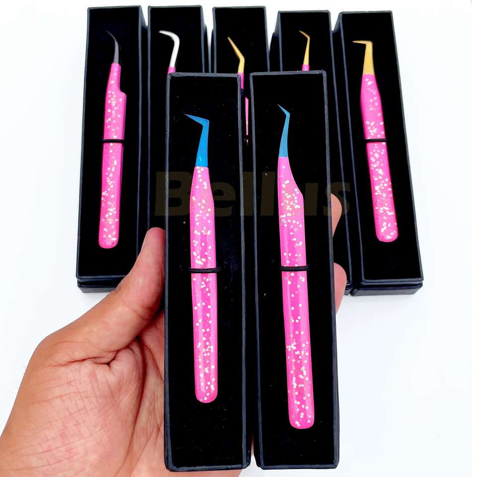 แหนบต่อขนตาแบบปรับแต่งได้ทำจากสเตนเลสสตีลผงสีชมพูสีดำพลาสมามีตัวเลือกฉลากส่วนตัว