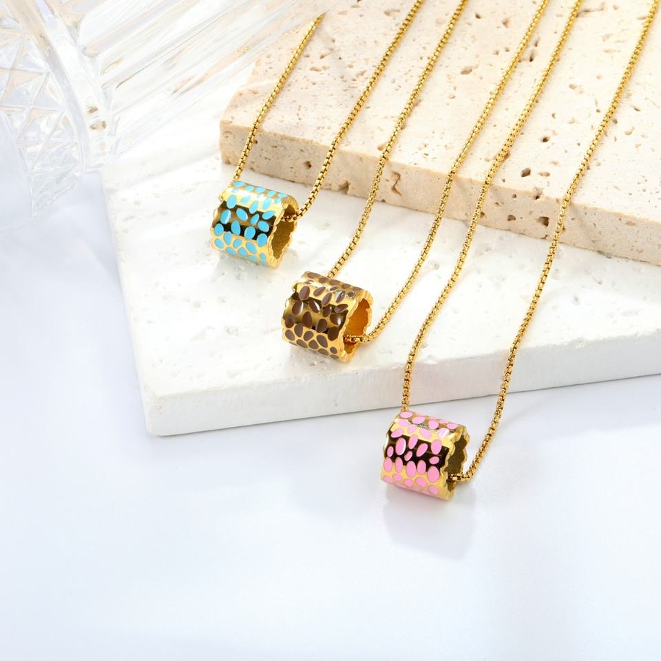 สร้อยคอจี้ทรงกระบอกสแตนเลสแบบขายส่ง ชุบทอง 18K พร้อมสร้อยแบบเกลียวลายงู สำหรับผู้หญิง
