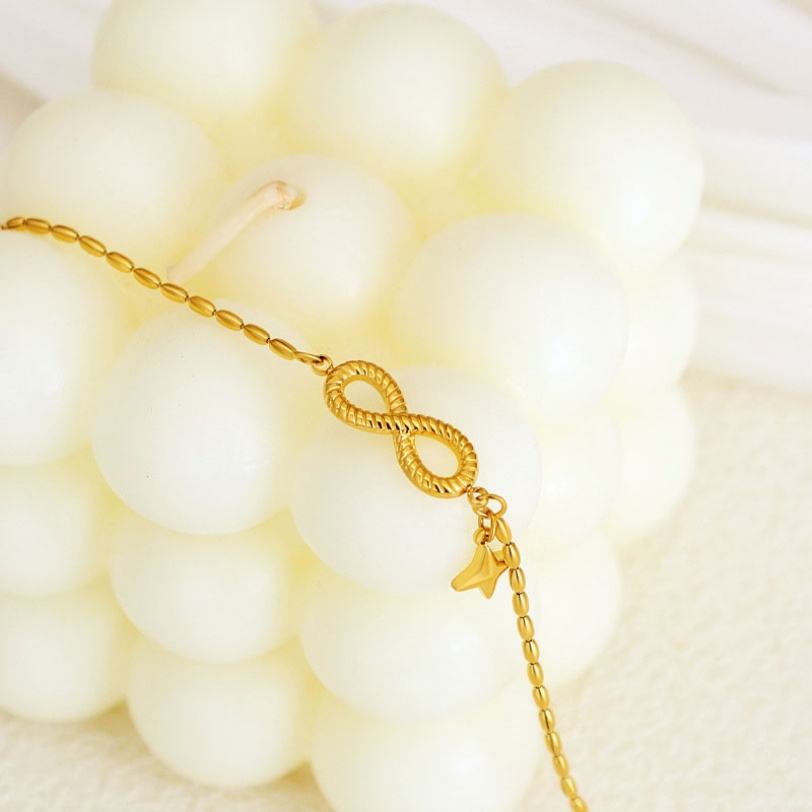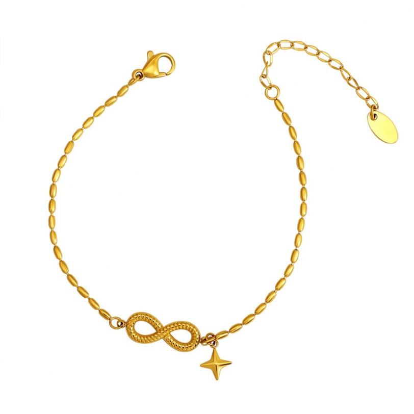 สร้อยข้อมือสแตนเลสสตีลแฟชั่นแบบขายส่งสำหรับผู้หญิง ชุบทอง 14k 18k ลายอินฟินิตี้ สร้อยข้อมือและกำไลข้อมือสำหรับผู้หญิง
