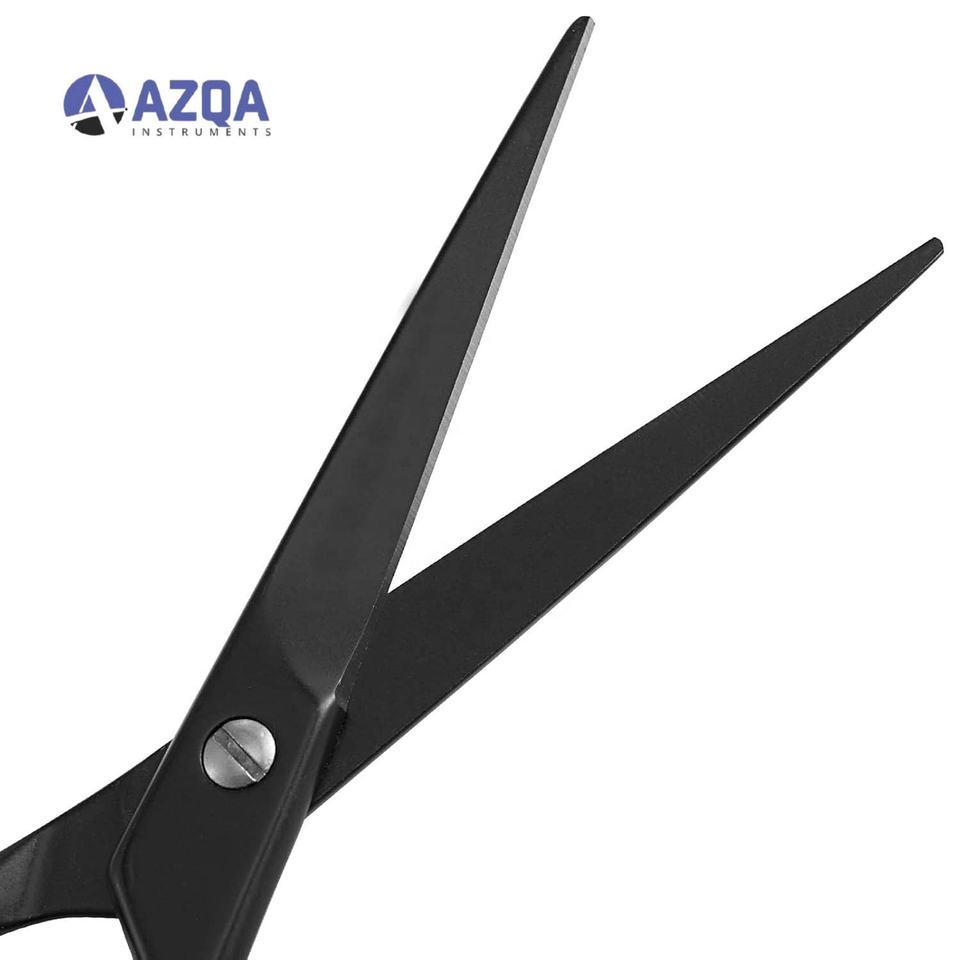 กรรไกรตัดผมสแตนเลสสีดำสำหรับร้านเสริมสวย ขายส่ง พร้อมด้ามจับกันลื่น ตัดได้เรียบเนียน และใช้งานได้หลากหลาย