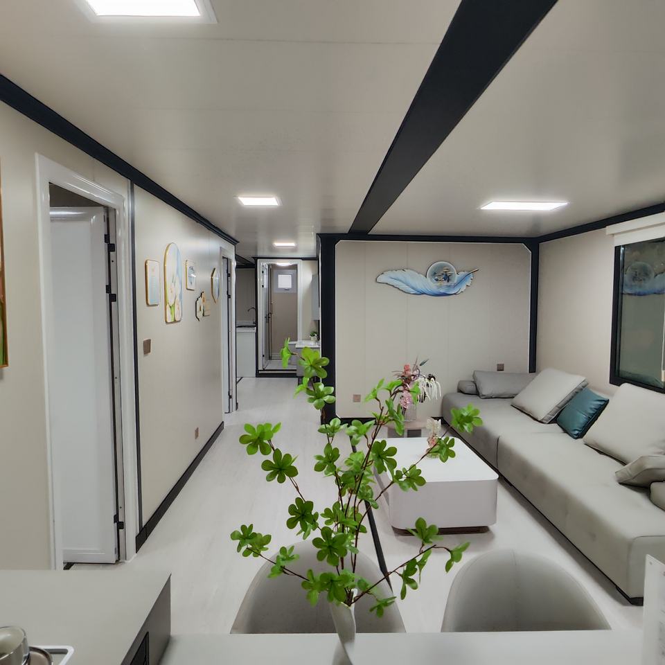 บ้านสำเร็จรูปเหล็กขนาด 20 ฟุต 40 ฟุต แบบโมดูลาร์ สำนักงานเคลื่อนที่ทันสมัย ขยายได้ ระบายอากาศได้ดี ติดตั้งรวดเร็ว