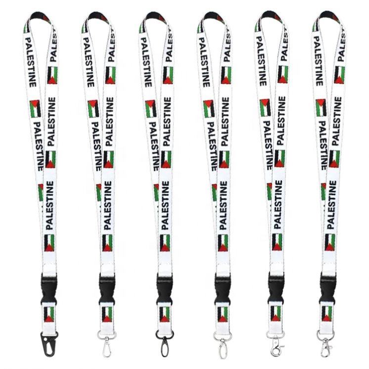 สายคล้องคอพิมพ์ลายโลโก้แบบกำหนดเอง ผลิตจากโพลีเอสเตอร์ สำหรับงานพิมพ์แบบซับลิเมชั่น ขายส่ง มีสินค้าพร้อมส่ง จัดส่งรวดเร็ว ลายฟรีปาเลสไตน์