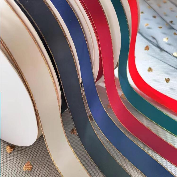 ริบบิ้นออร์แกนซ่าไนลอนขายส่งพร้อมขอบดิ้นทองสำหรับของขวัญคริสต์มาส