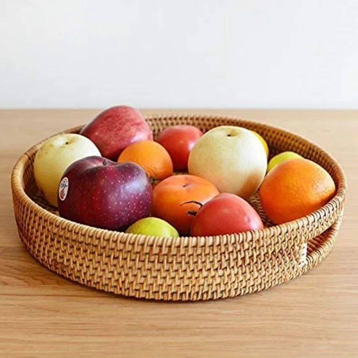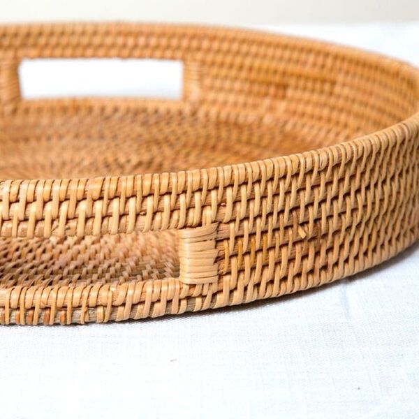 ตะกร้าหวายทรงกลมทำด้วยมือถาดหวายสีน้ำตาล100% เวียดนาม