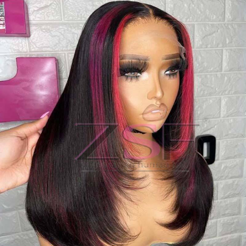 วิกผมลูกไม้ด้านหน้าแบบตรงวิกผมแท้สีดำสำหรับผู้หญิงผิวดำ