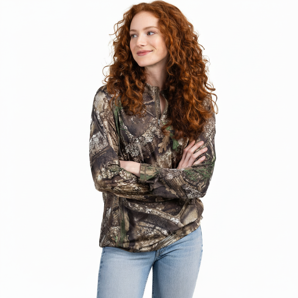 เสื้อเบลาส์สำหรับผู้หญิงทรงตรงแขนยาวระบายอากาศได้เสื้อออกกำลังกายลำลองพิมพ์ลายป่าต้นไม้จริง