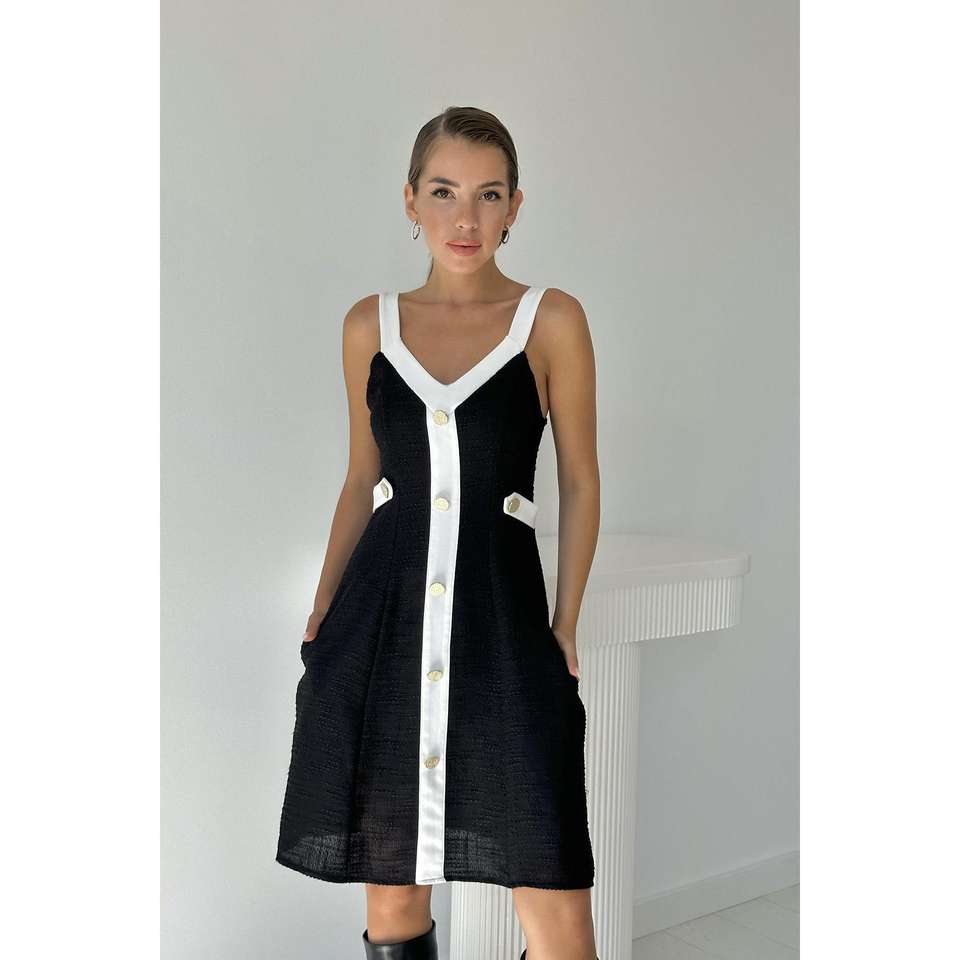 ชุดเดรสค็อกเทลสายเดี่ยวขายส่ง สีดำและสีขาวงาช้าง พร้อมกระเป๋าตกแต่ง